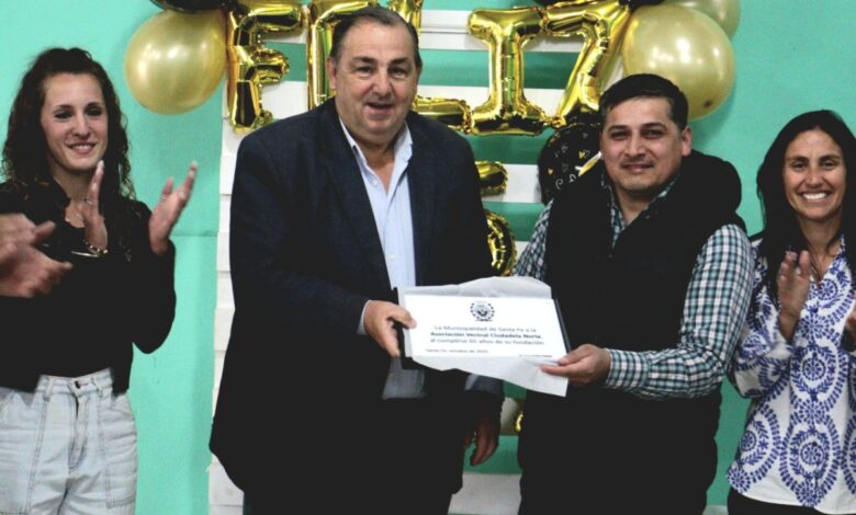 - En ese marco, la Municipalidad acompañó la ceremonia de cumpleaños y, en reconocimiento a la trayectoria de la institución y el esfuerzo de sus miembros, Poletti les entregó una plaqueta conmemorativa. Junto al mandatario local estuvieron presentes la concejal Titi Barletta y la directora de Asuntos Vecinales, Natalia Zanella, compartiendo la celebración con vecinos, dirigentes y colaboradores vinculados a la vecinal.