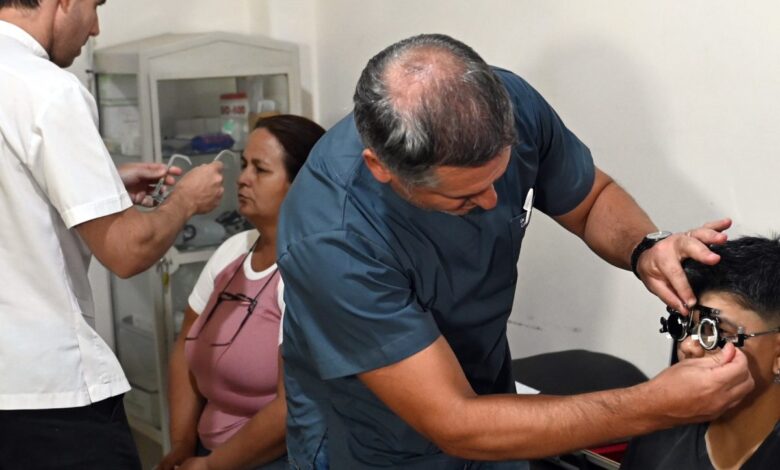- El dispositivo se organizó con la participación de oftalmólogos del Colegio de Oftalmólogos, que se sumaron de manera voluntaria y gratuita para realizar los controles, y con la donación de lentes recetados por parte del Colegio de Ópticos.